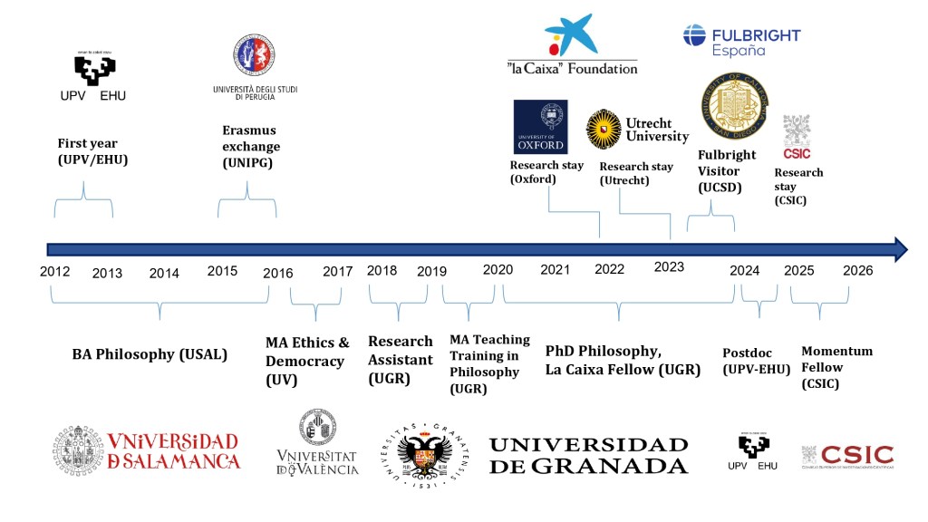 I am a Juan de la Cierva Fellow (funded by the State Research Agency of Spain) at the Spanish National Research Council (CSIC). Previously, I was a Momentum fellow (funded by NextGenerationEU) at the President’s Cabinet of CSIC, and before that, I worked as a Postdoc at the University of the Basque Country. I completed my Ph.D. in Philosophy (Summa Cum Laude and International Distinction) at the University of Granada with a La Caixa INPhINIT Fellowship. I have conducted research stays at Oxford University, Utrecht University, and the University of California-San Diego (as a Fulbright fellow). During Spring-Summer semesters, I lecture in the online course «Global Public Health Law and Ethics» for the M.Sc. in Global Public Health at Deggendorf Institute of Technology. In Spring 2026, I will be a Caroline Miles Visiting Scholar at the Ethox Centre (Oxford).